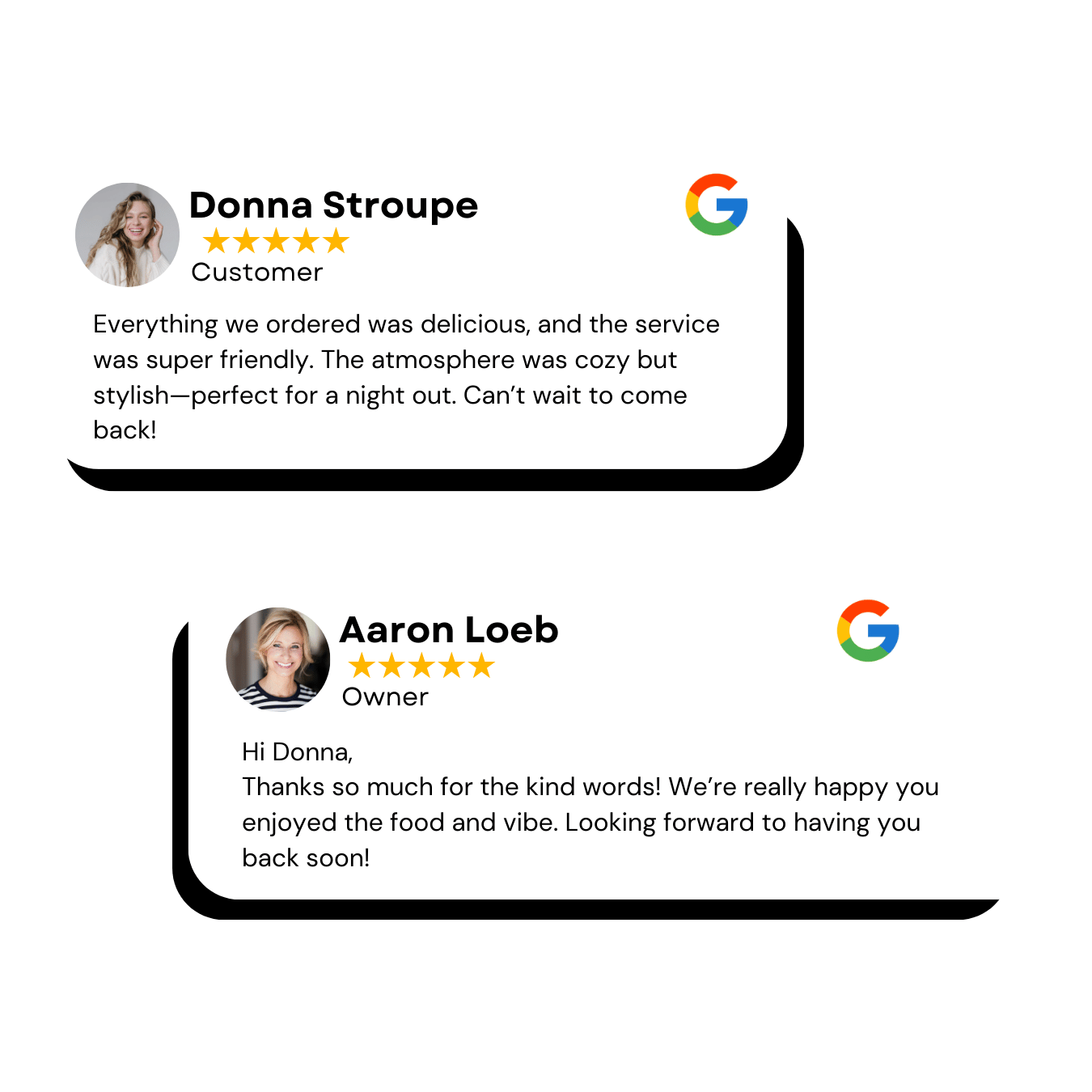 Every time a guest leaves a review and gets a personal, friendly reply, Google sees your restaurant as active, trustworthy, and guest-focused. This not only boosts your ranking but also keeps your profile fresh, attracting more diners who are searching for a place that truly cares.